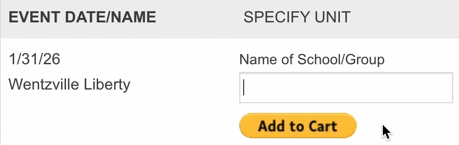 Find your event below, type your school or unit’s name into the empty box, and hit “Add to Cart”. I’ll remove the watermarks from your photos and make them available for you to download and share – forever!